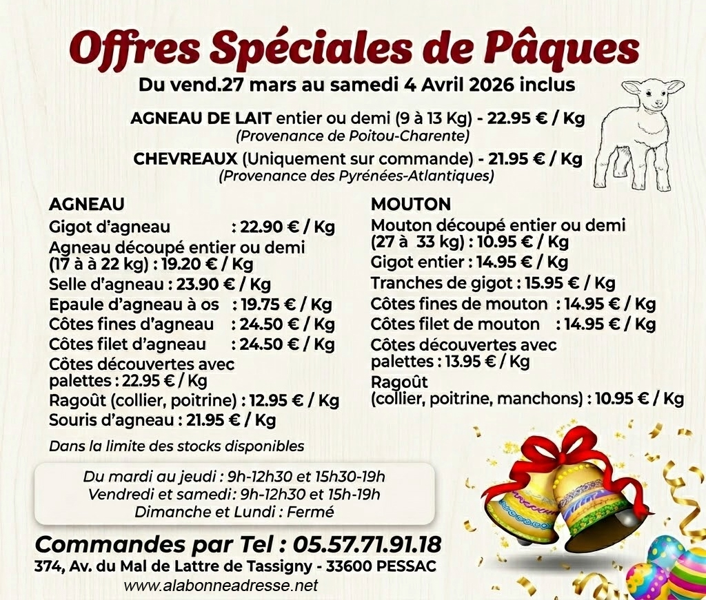 PASSER VOS COMMANDES PAR TELEPHONE 05.57.71.91.18